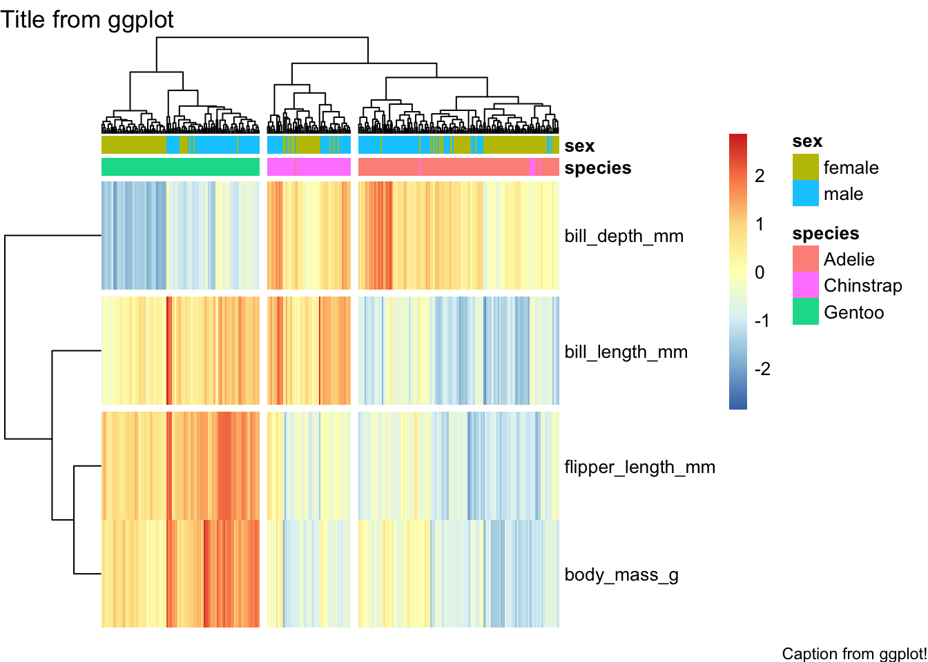 hm.annotation.df <- penguins_working %>% column_to_rownames("penguin_id") %>% select(species, sex) # annotation by species _and_ sex
