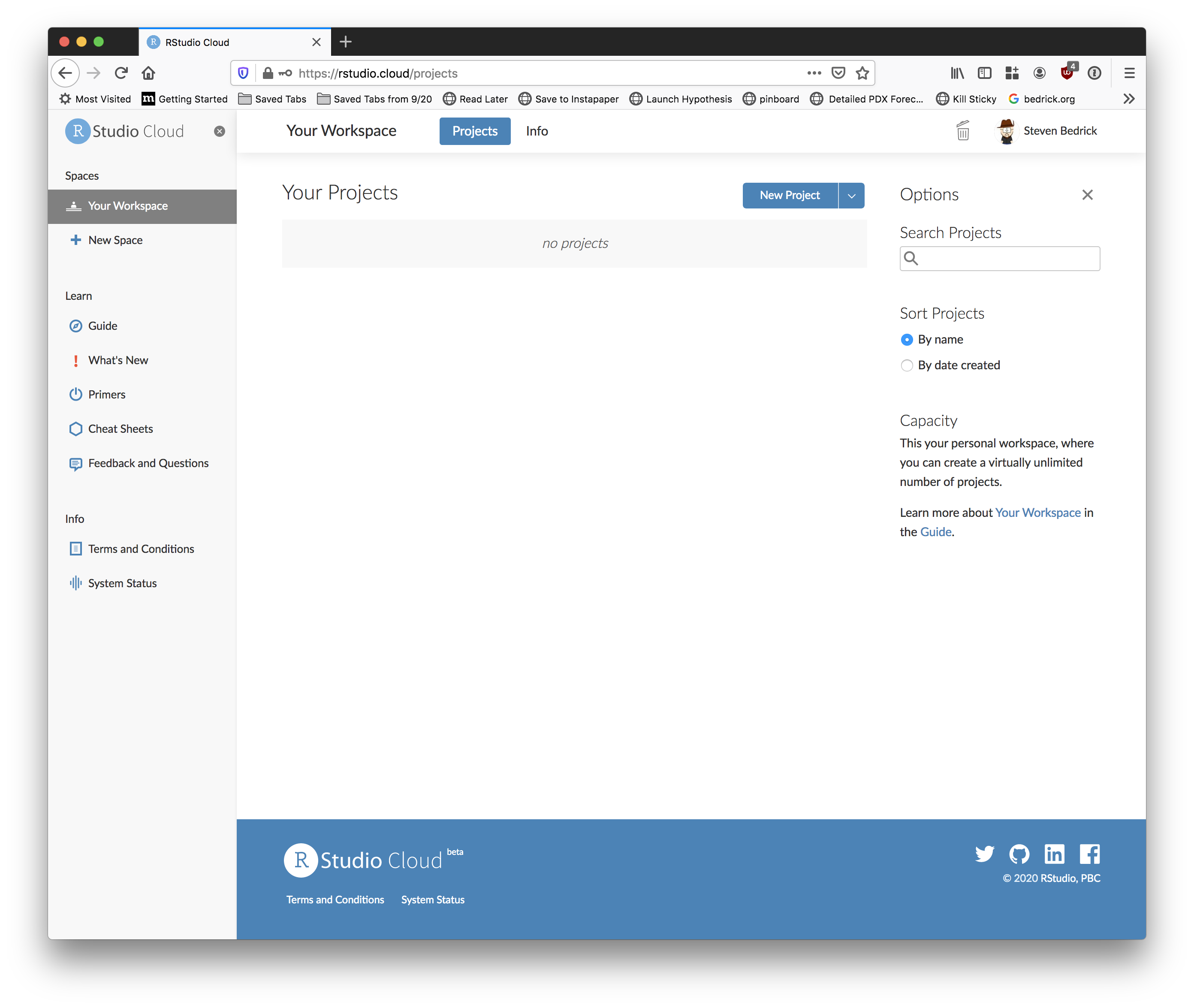 Until very recently, Posit Cloud was called “RStudio Cloud”; the screenshots below have the old name, but other than the logo the UI is basically identical.