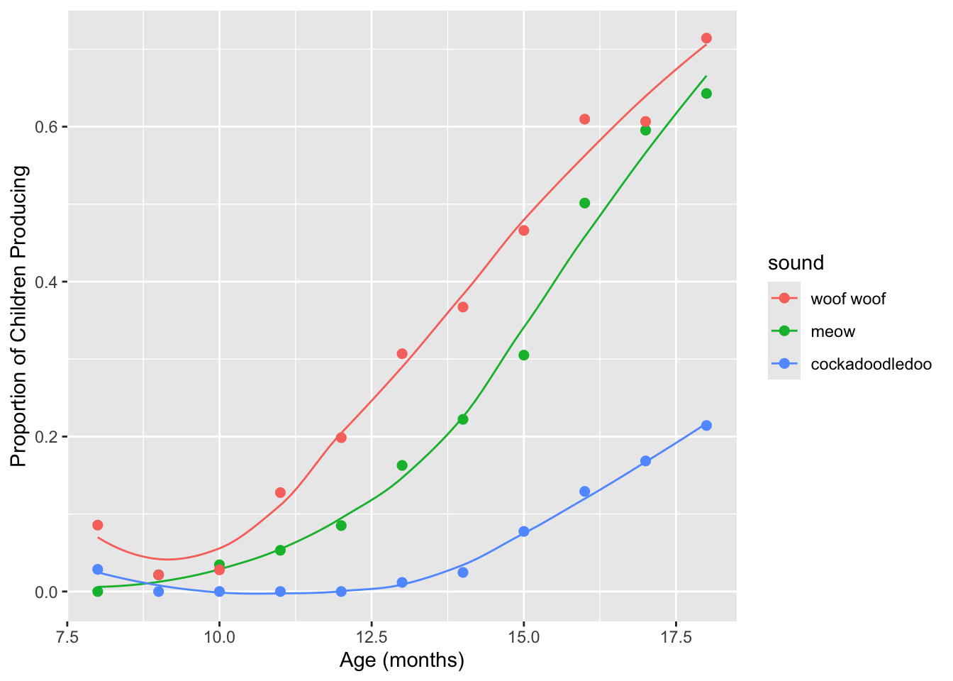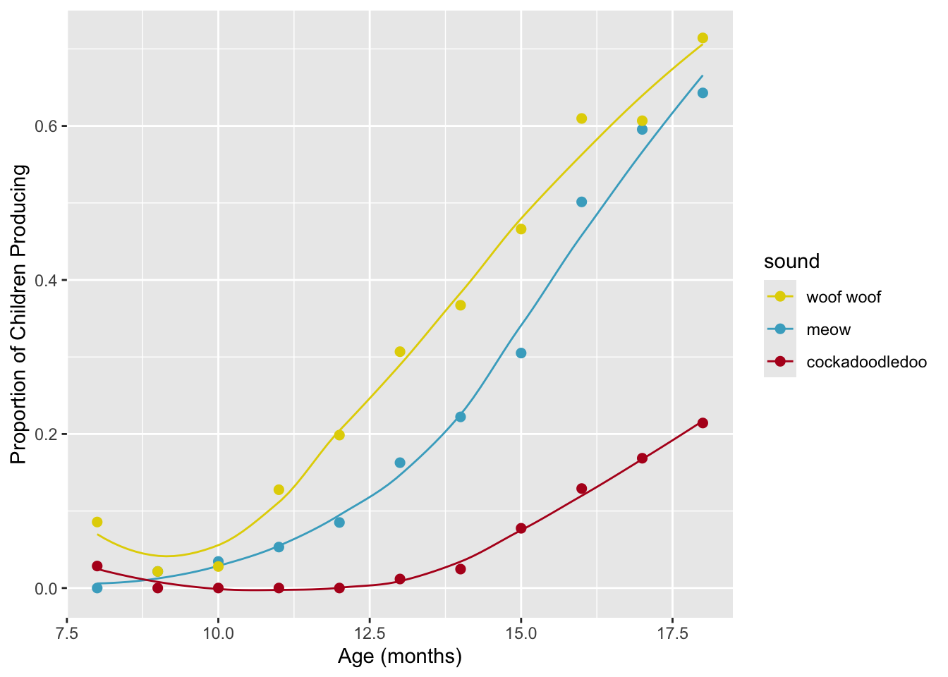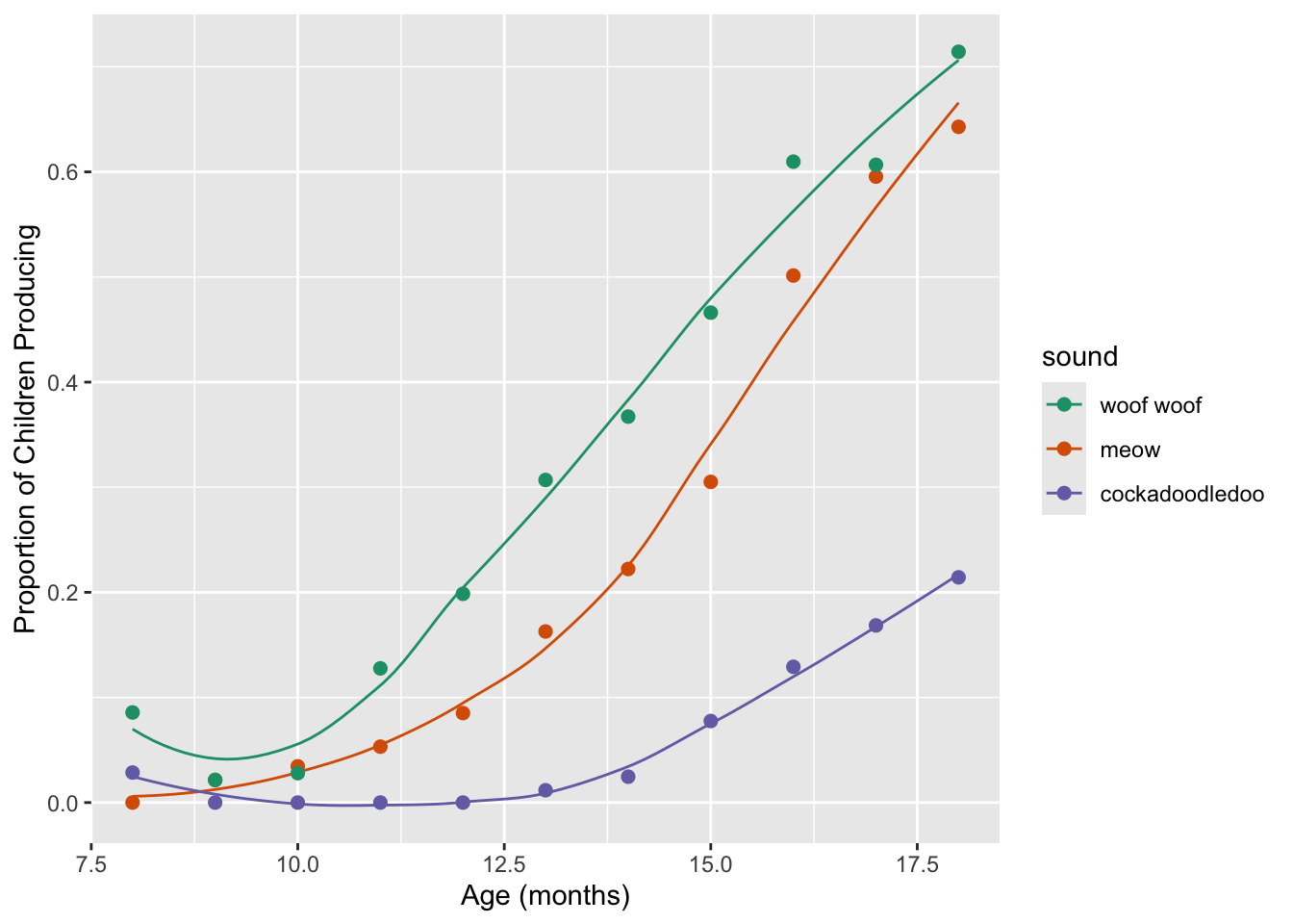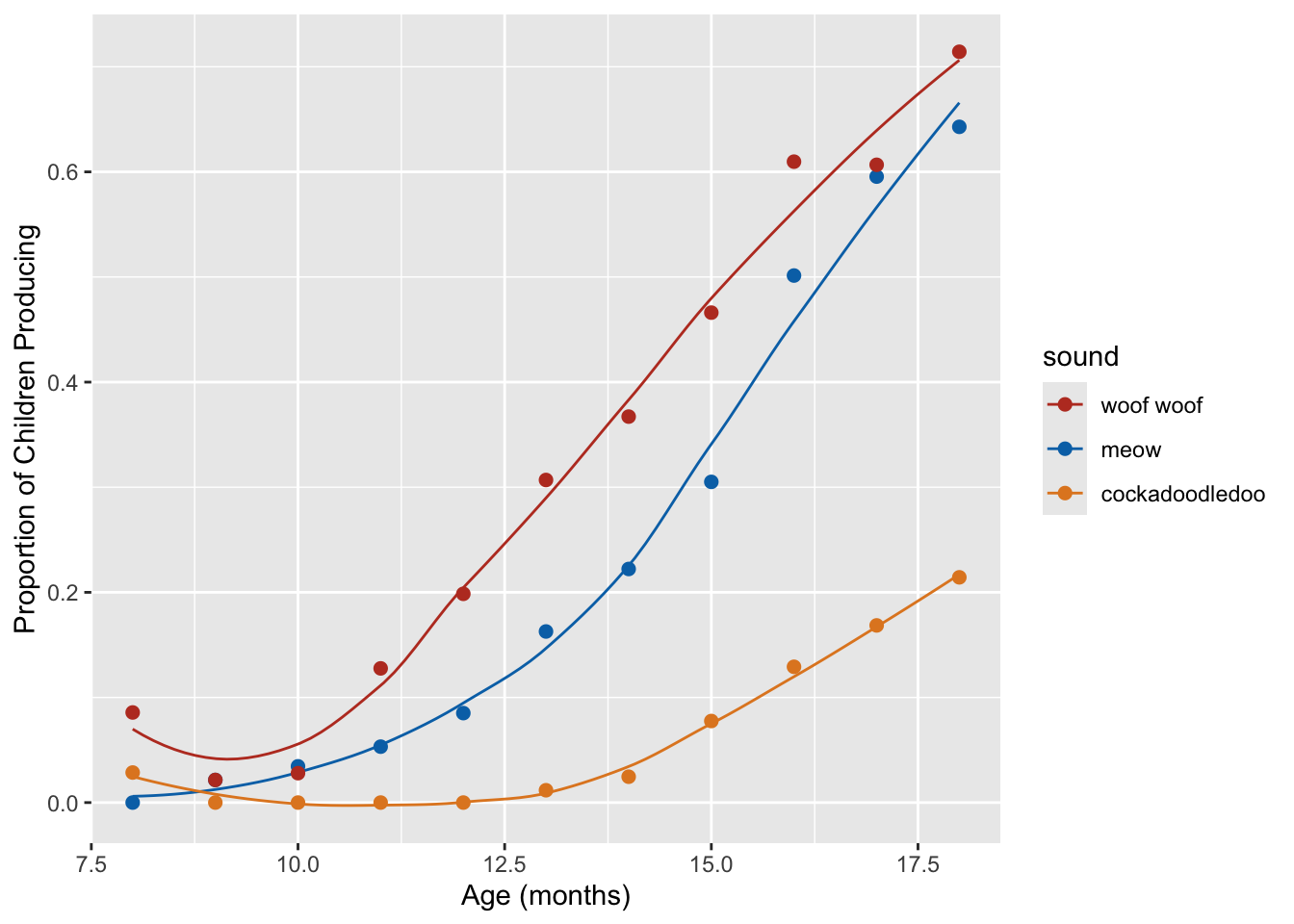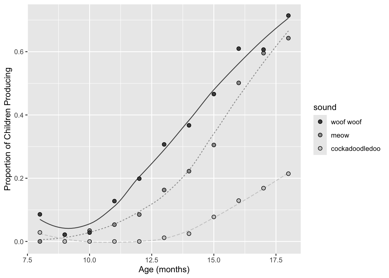 labs(x = "Age (mos)", y = "Proportion of Children Producing") +