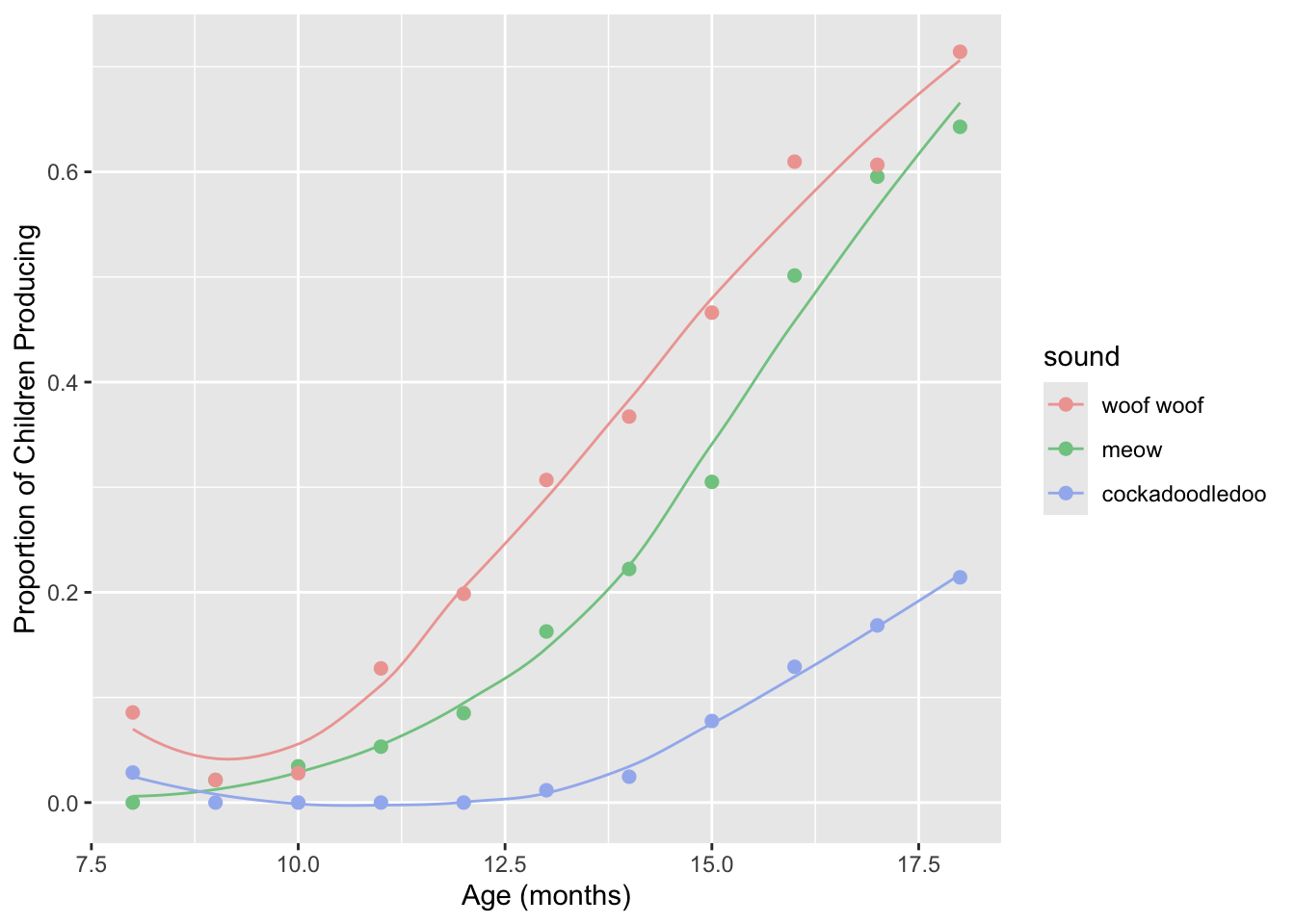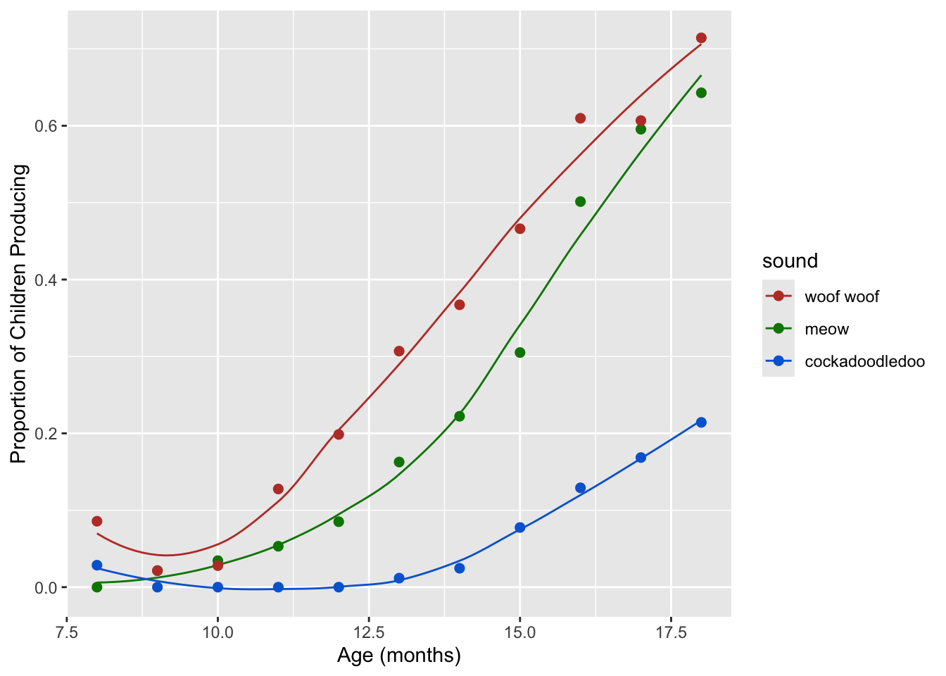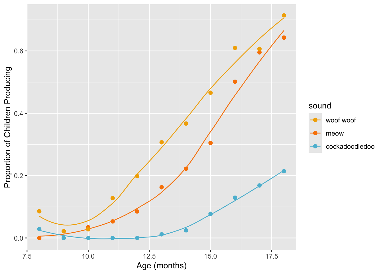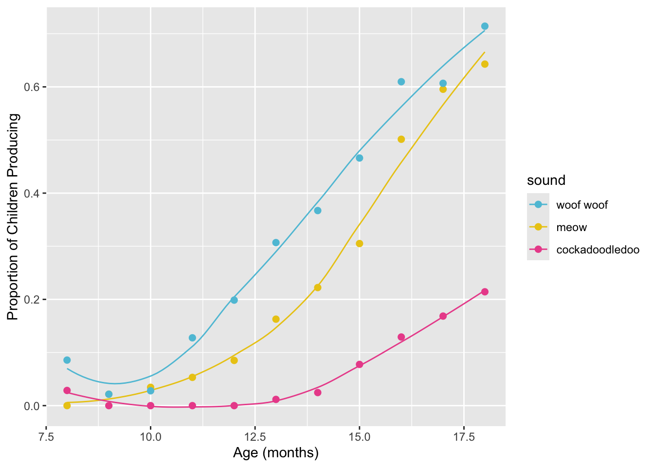 labs(x = "Age (mos)", y = "Proportion of Children Producing") +