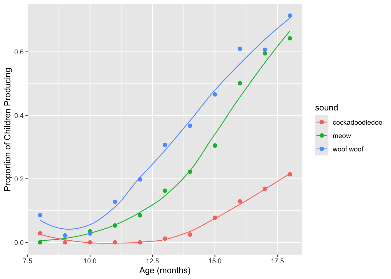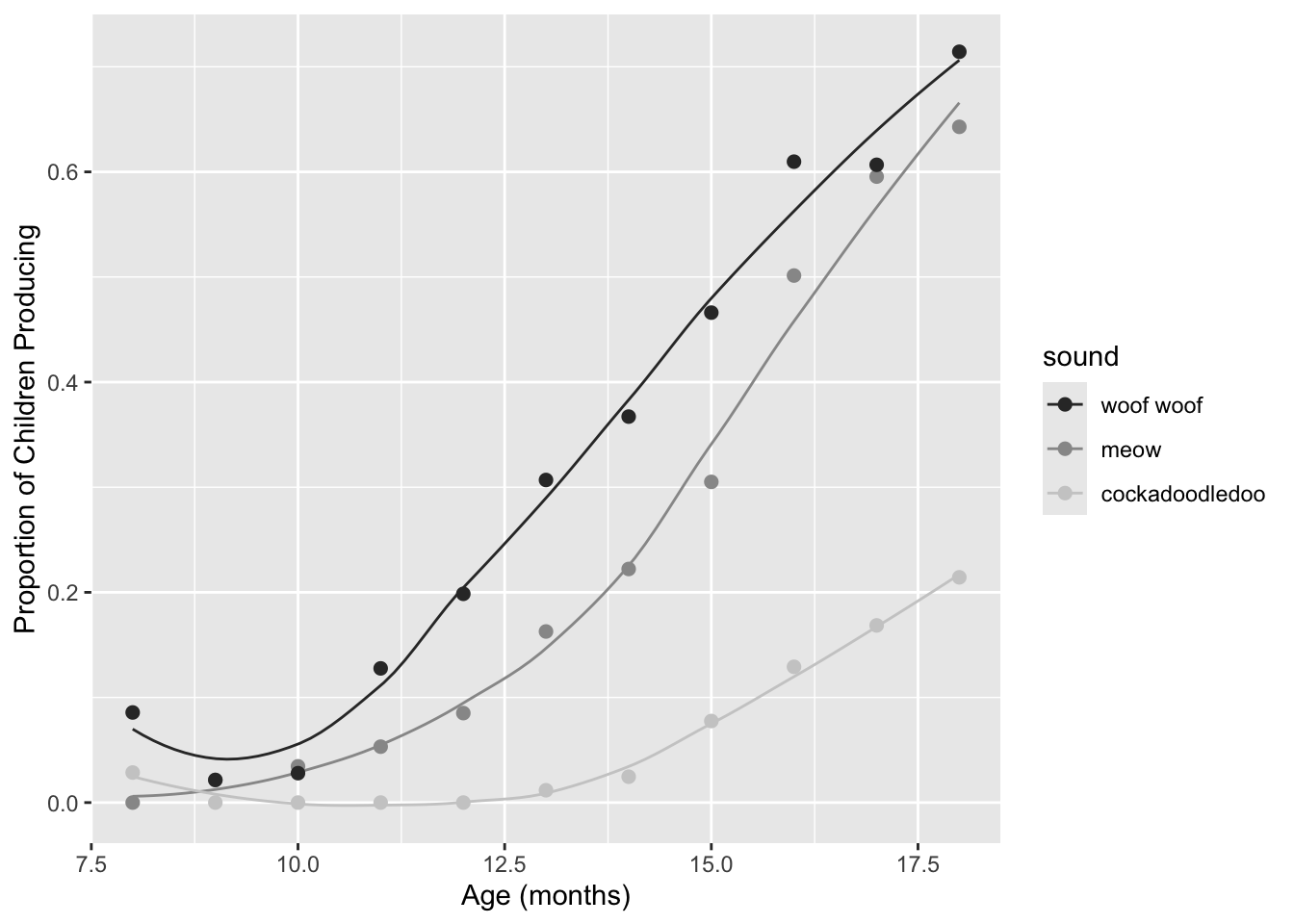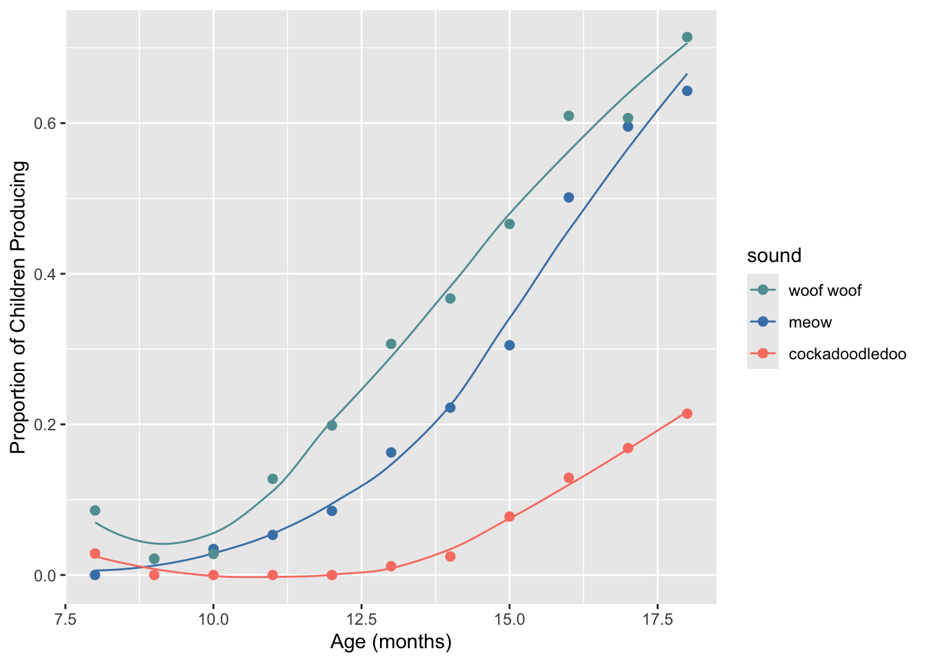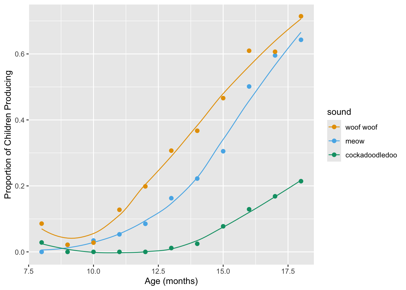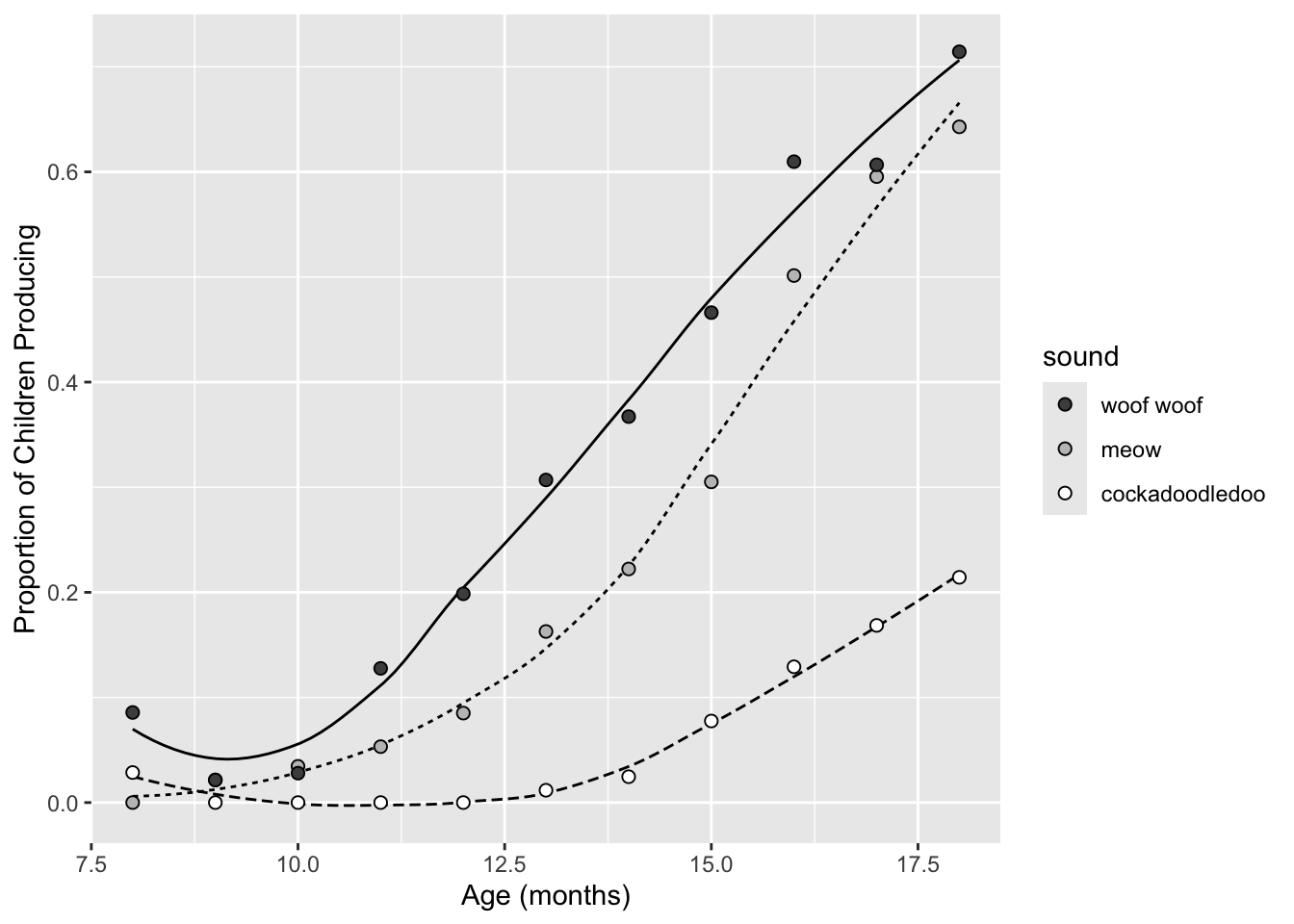 labs(x = "Age (mos)", y = "Proportion of Children Producing") +