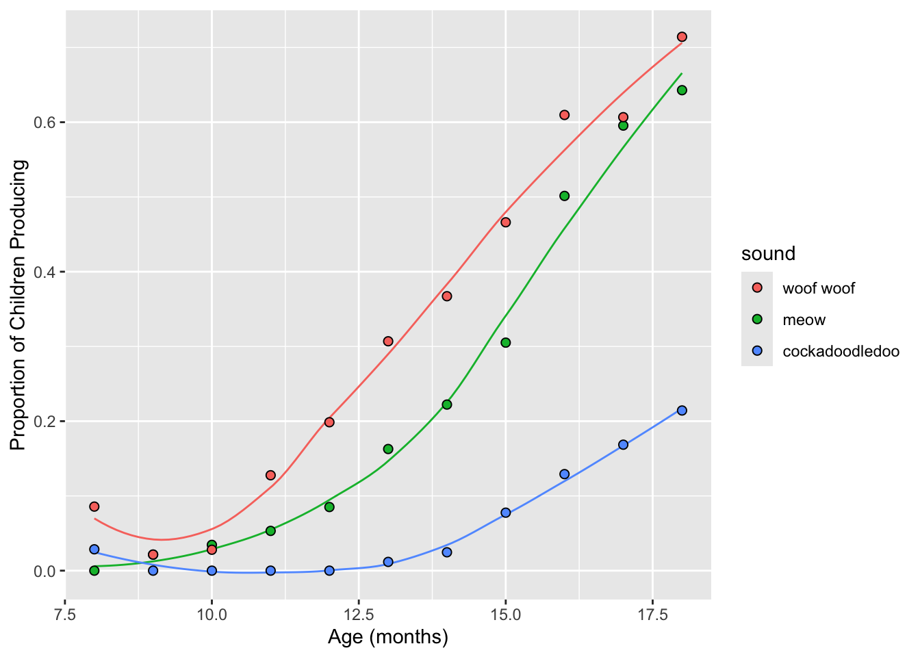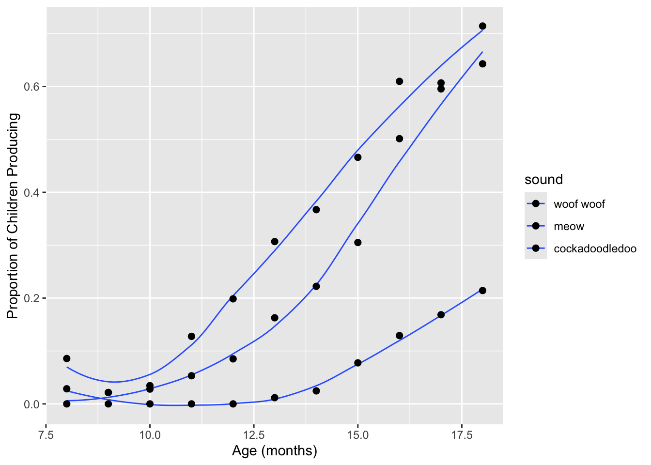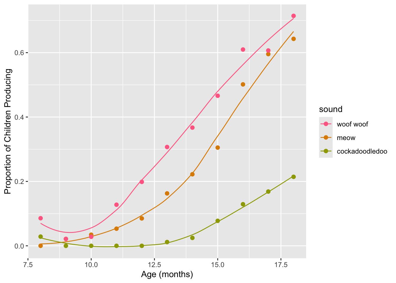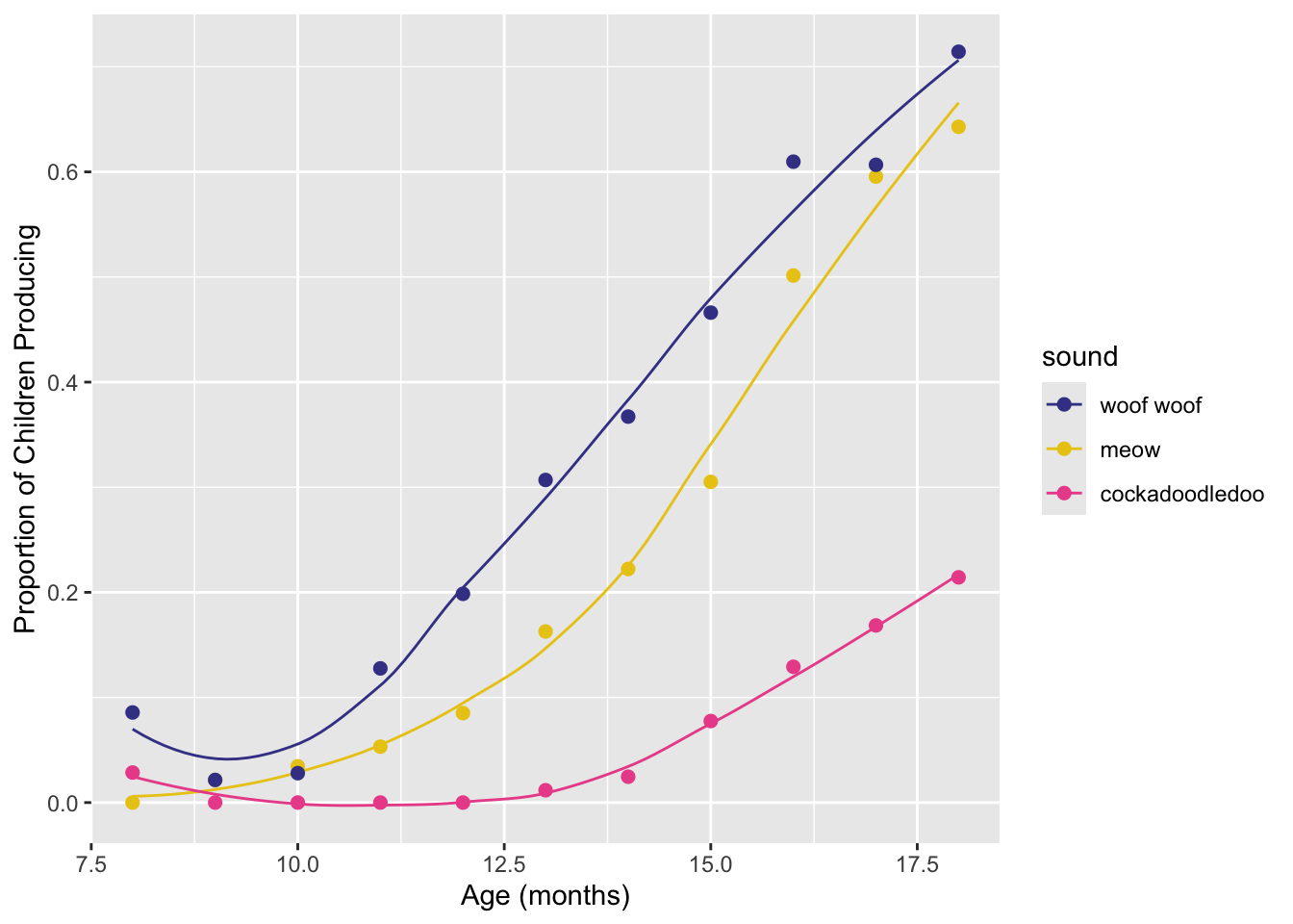 labs(x = "Age (mos)", y = "Proportion of Children Producing") +