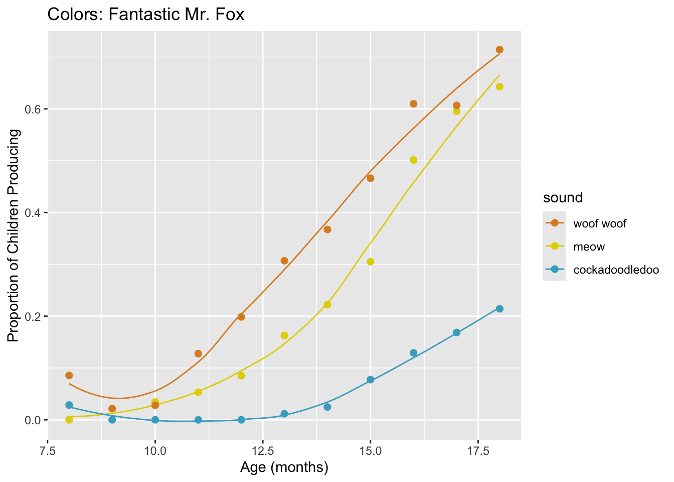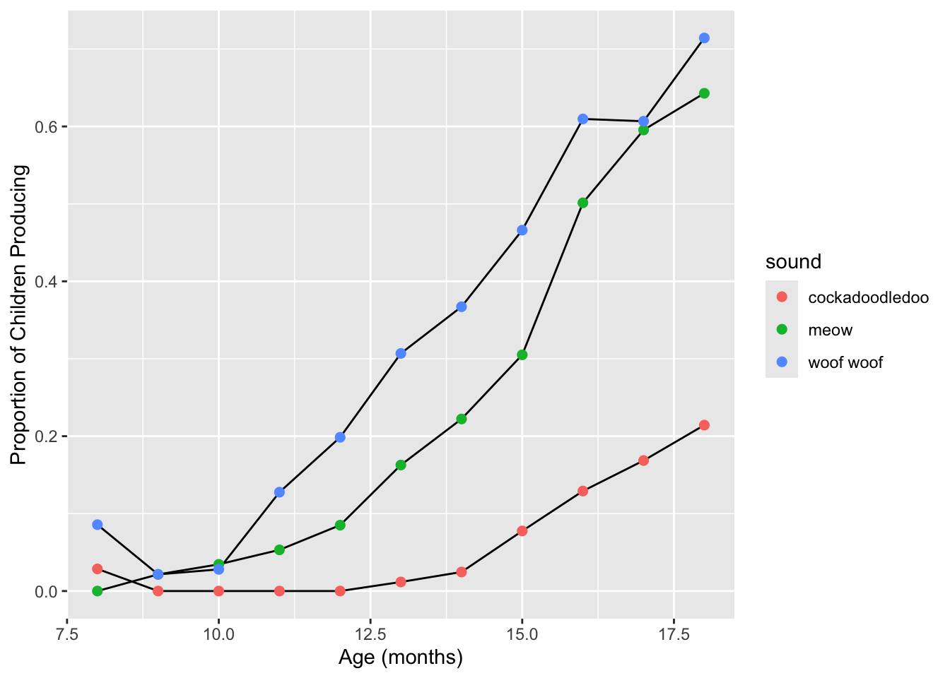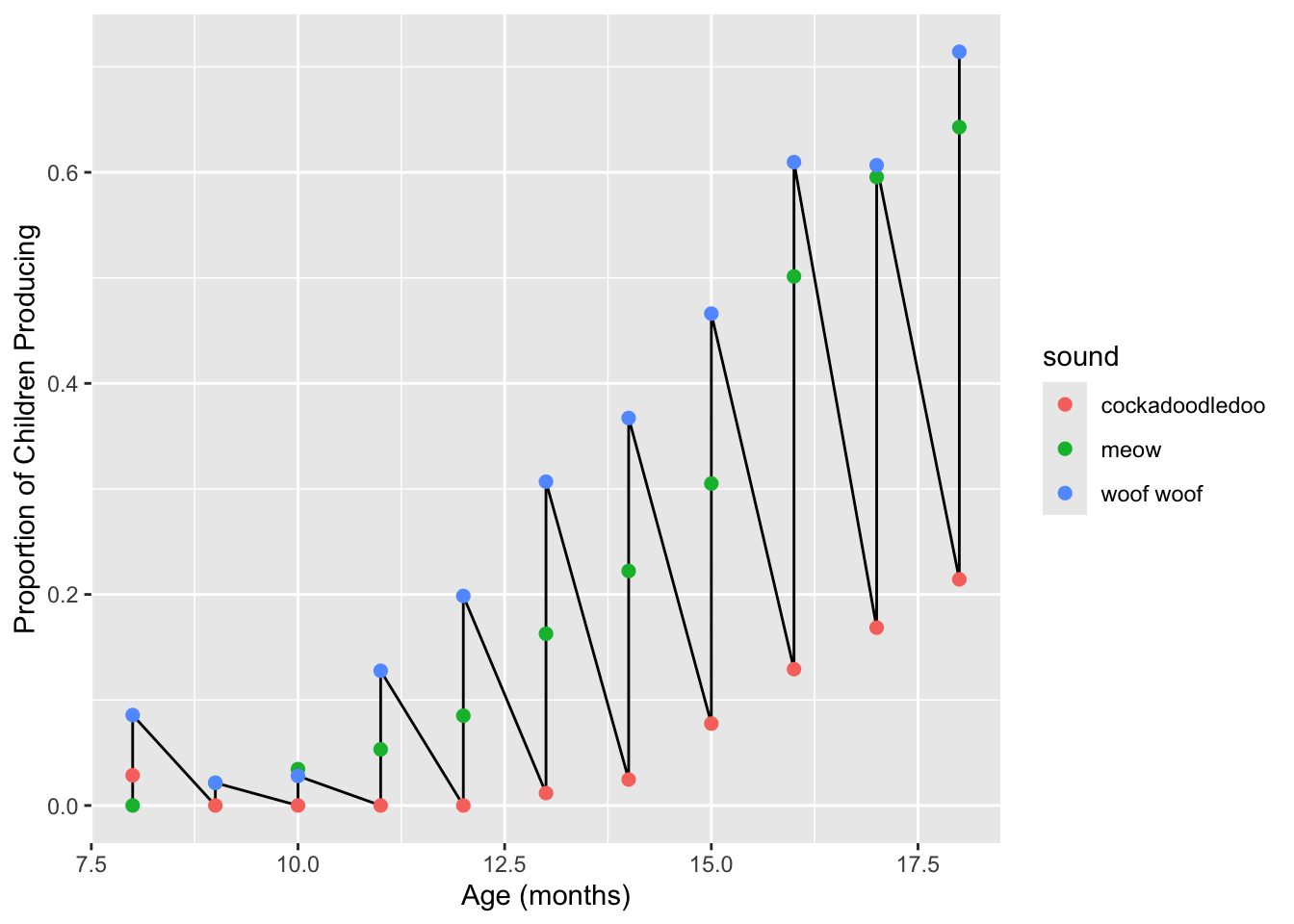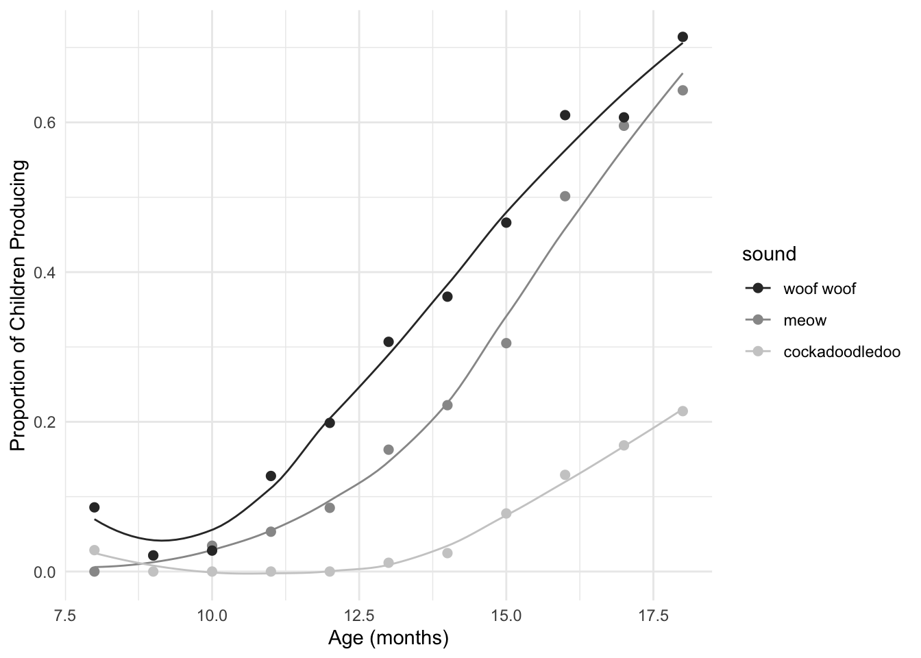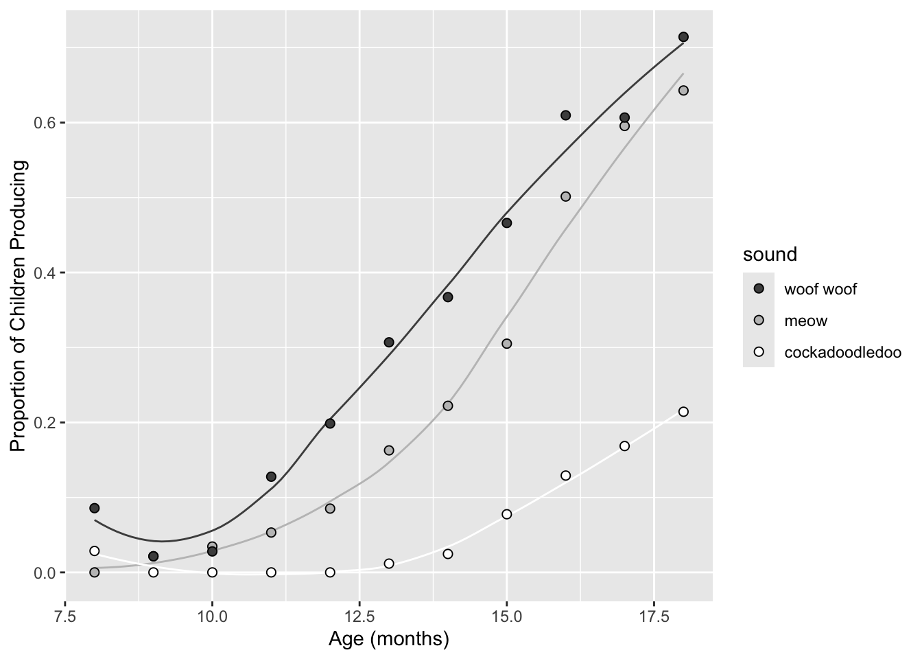labs(x = "Age (mos)", y = "Proportion of Children Producing") +