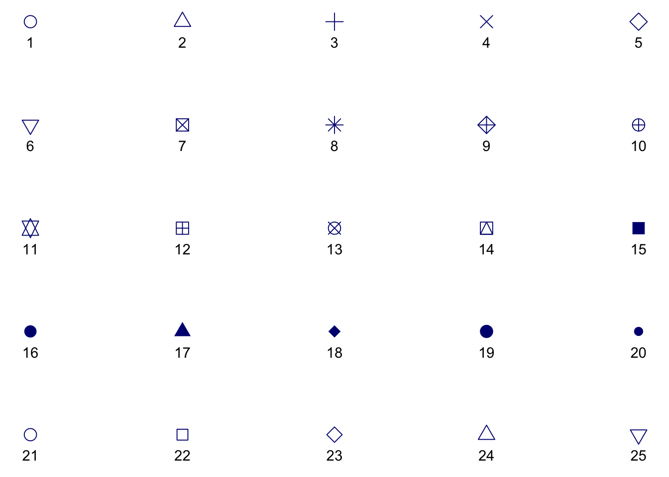 s + geom_point(aes(shape = z), size = 4, colour = "navy")